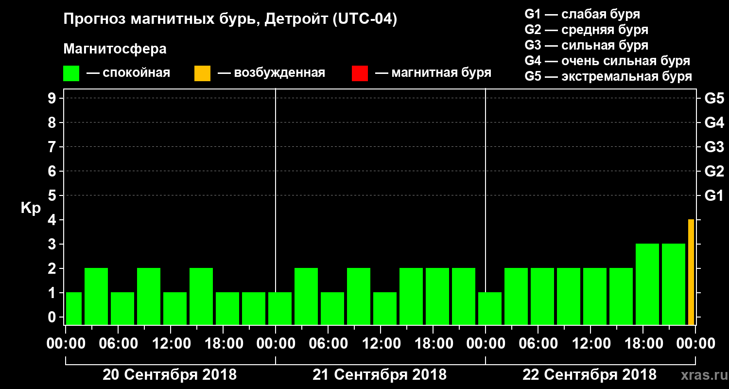 Прогноз магнитных бурь в Детройте — 20 сентября 2018 года