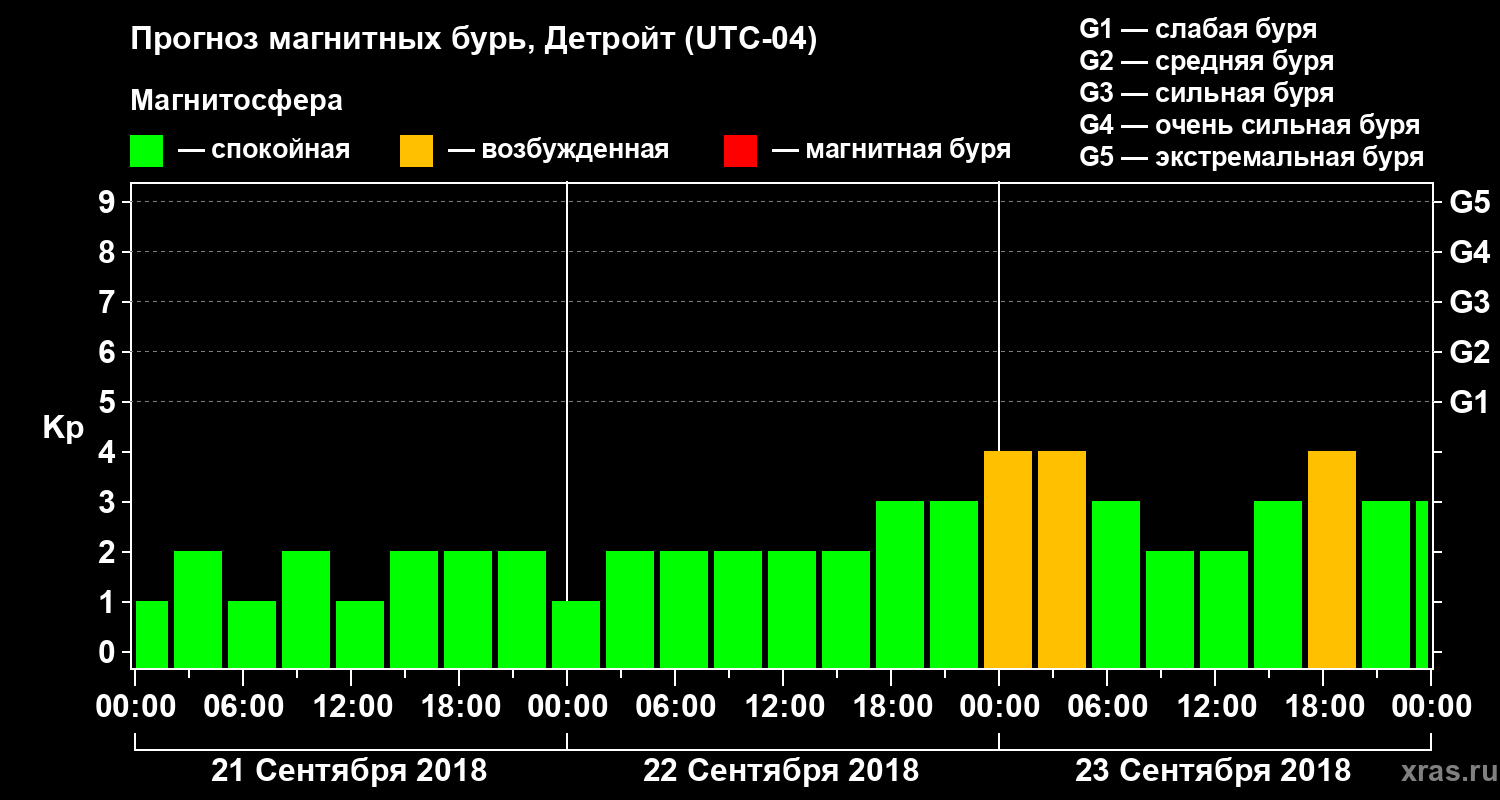 Прогноз магнитных бурь в Детройте — 21 сентября 2018 года