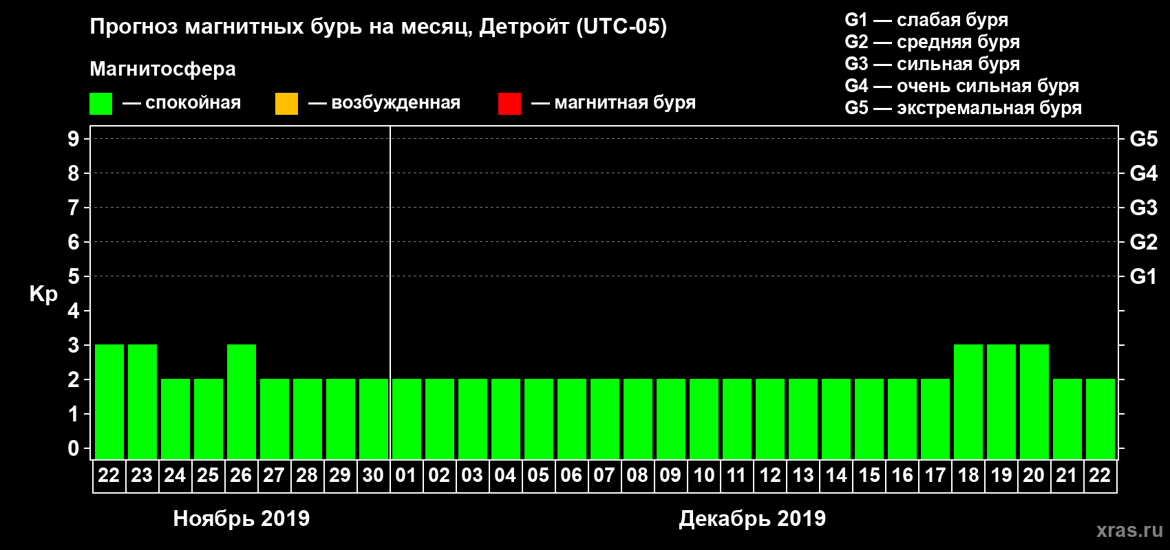 Прогноз магнитных бурь в Детройте — 22 ноября 2019 года