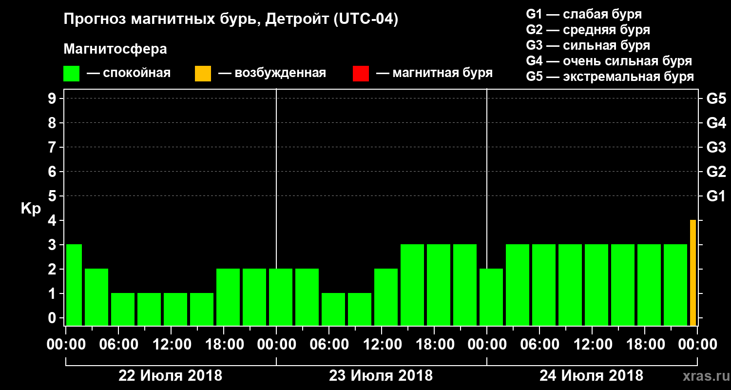 Прогноз магнитных бурь в Детройте — 22 июля 2018 года