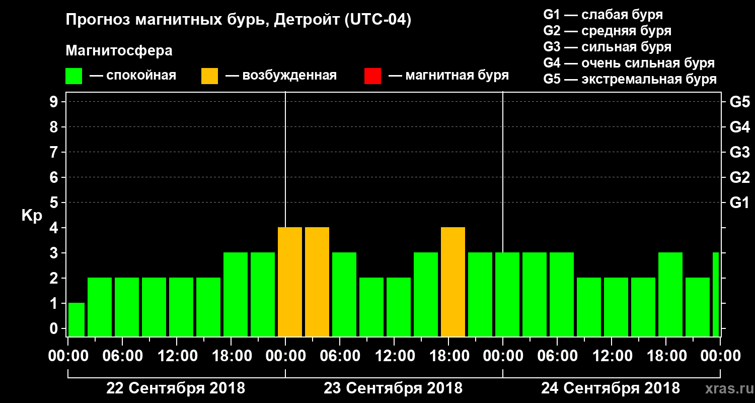 Прогноз магнитных бурь в Детройте — 22 сентября 2018 года