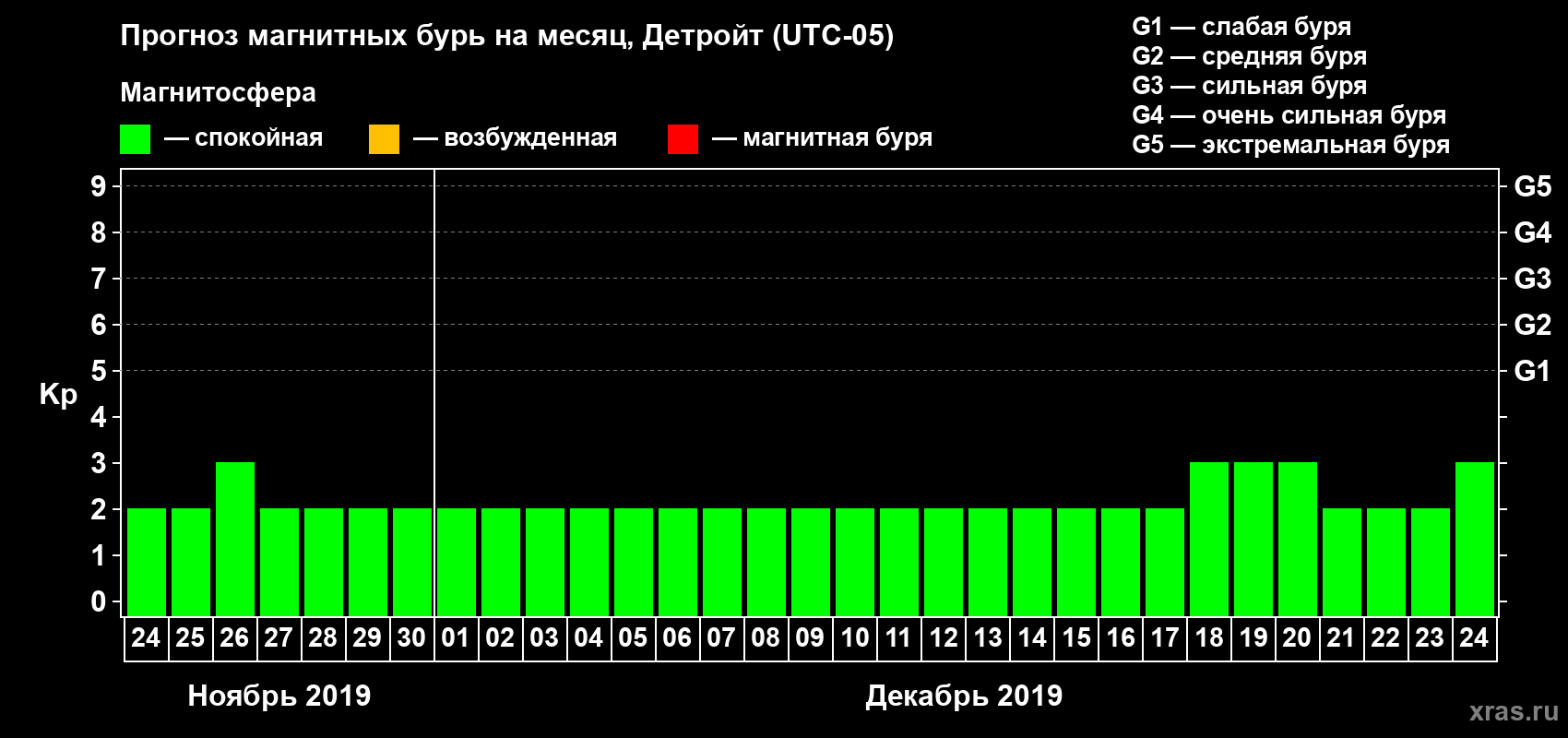 Прогноз магнитных бурь в Детройте — 24 ноября 2019 года