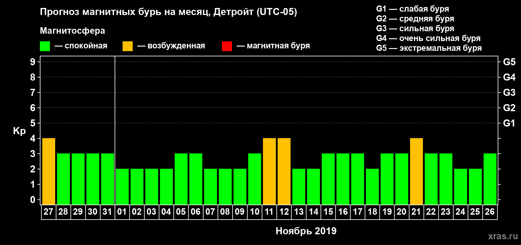 Прогноз магнитных бурь в Детройте — 27 октября 2019 года