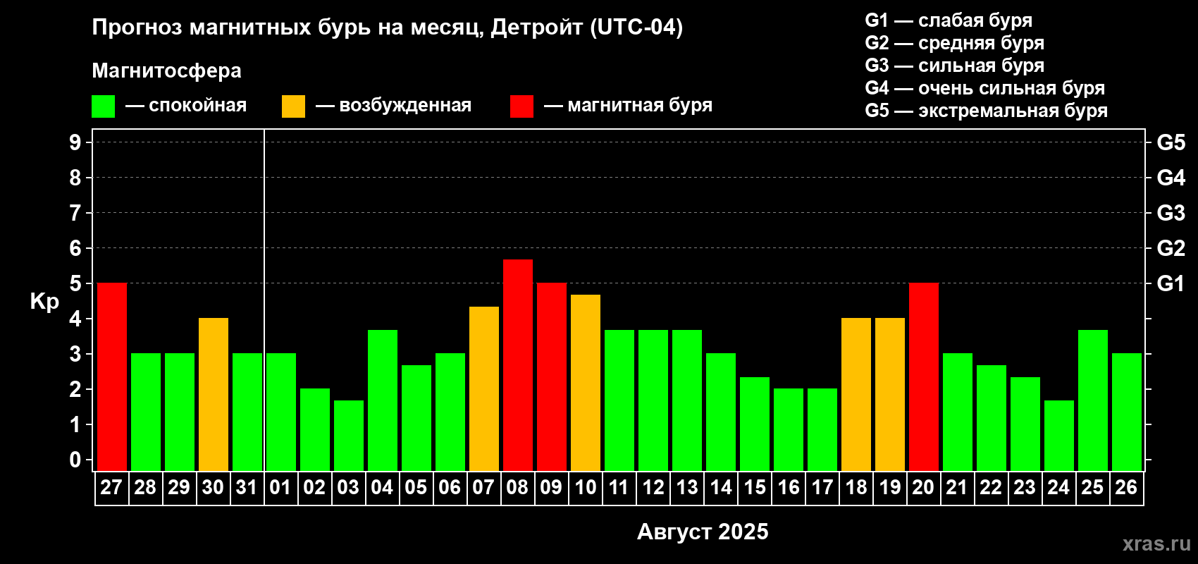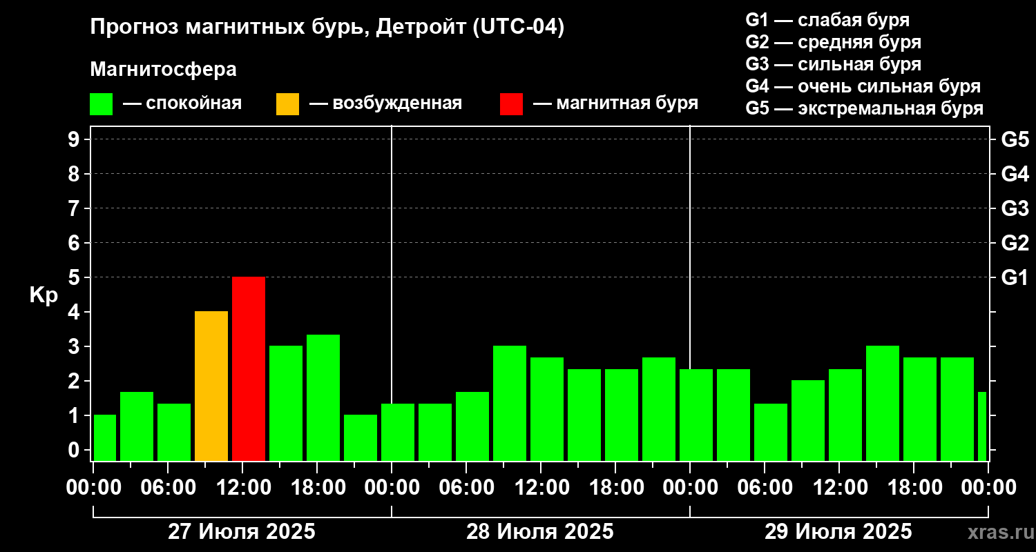 Прогноз магнитных бурь в Детройте — 27 июля 2025 года