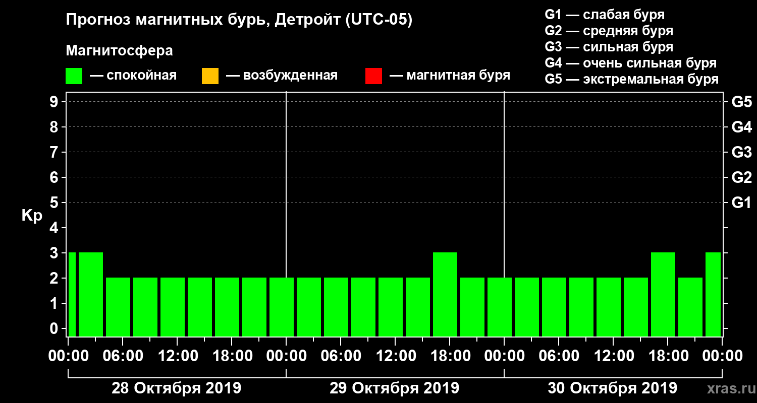 Прогноз магнитных бурь в Детройте — 28 октября 2019 года