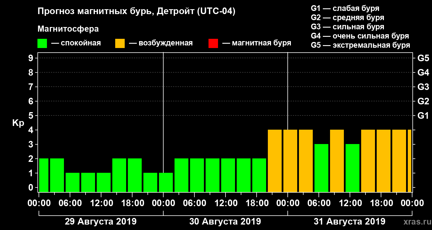 Прогноз магнитных бурь в Детройте на 29 августа 2019 года