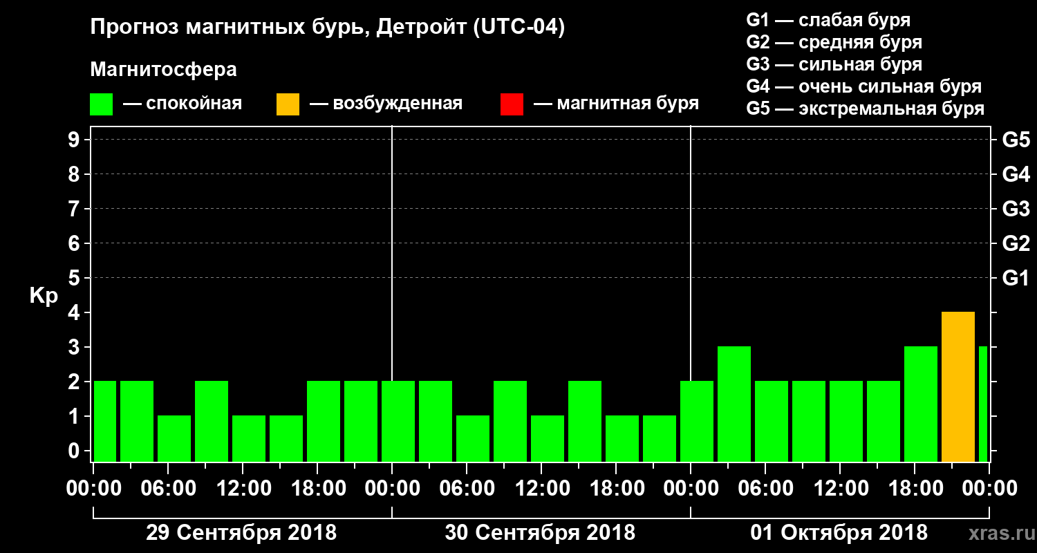 Прогноз магнитных бурь в Детройте — 29 сентября 2018 года