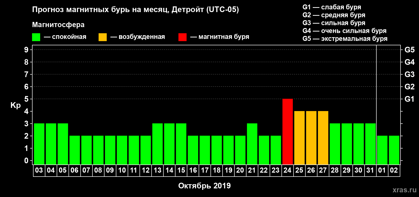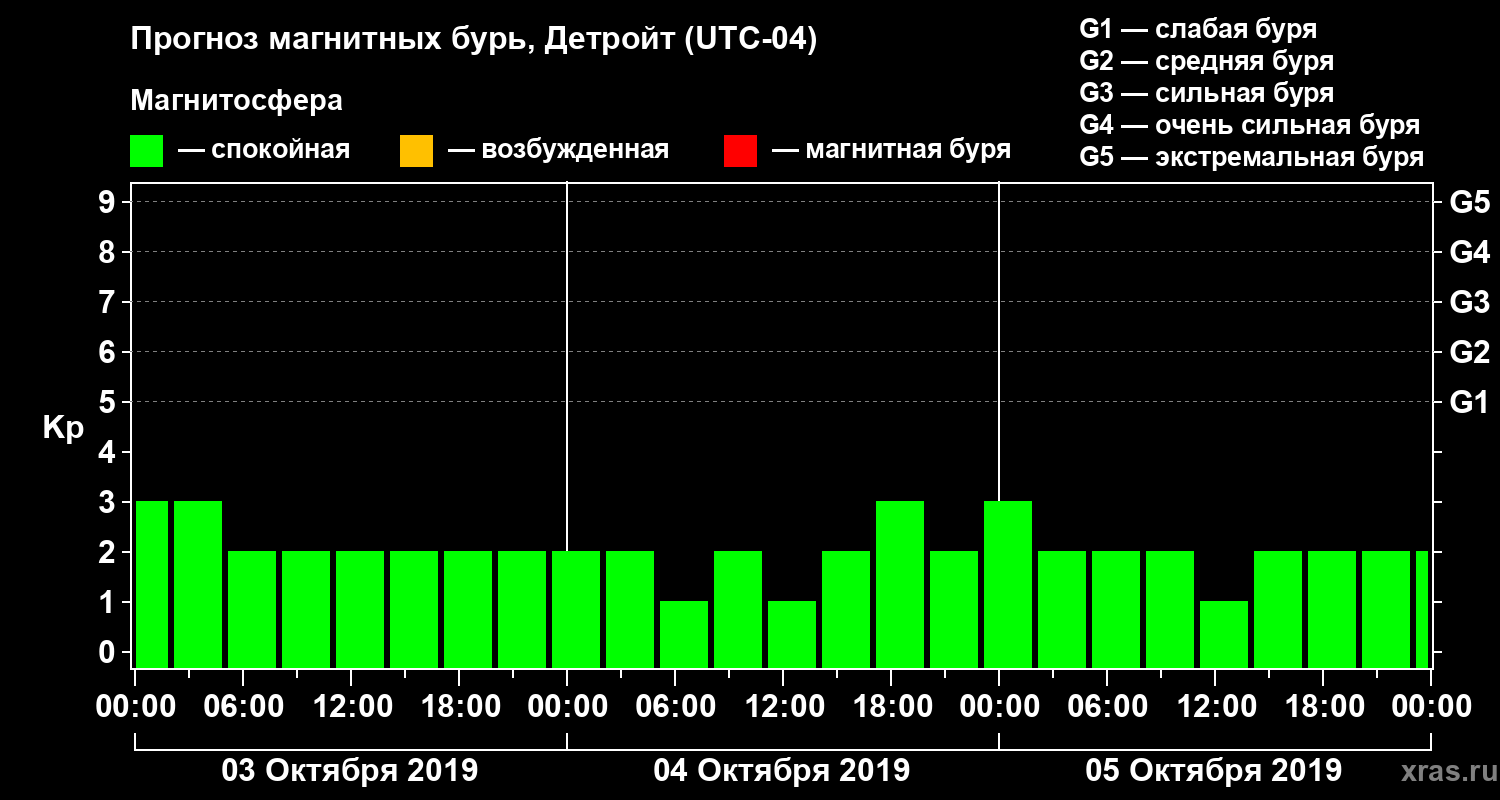 Прогноз магнитных бурь в Детройте — 3 октября 2019 года