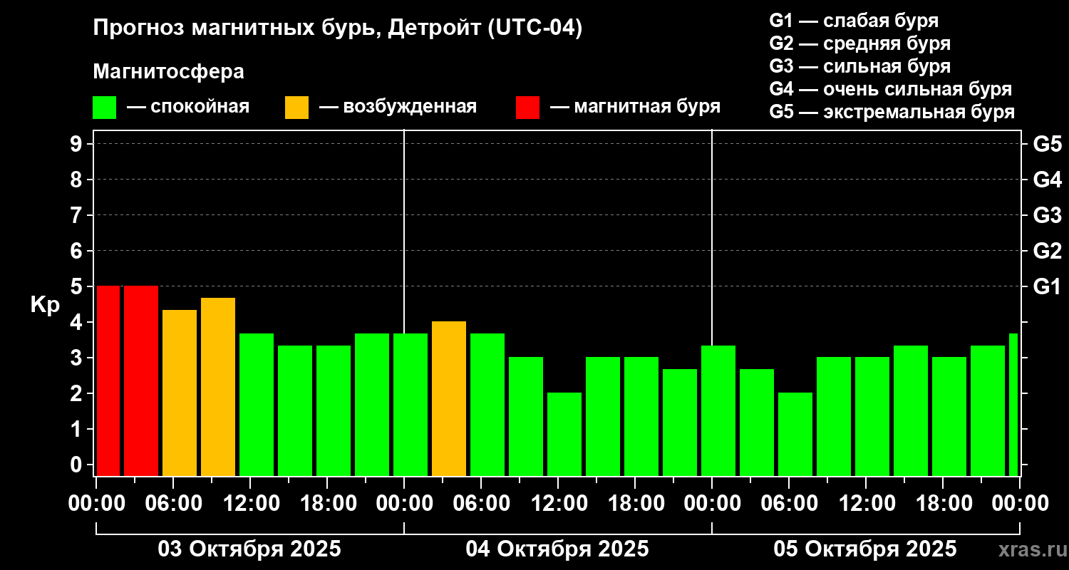Прогноз магнитных бурь в Детройте на 3 октября 2025 года