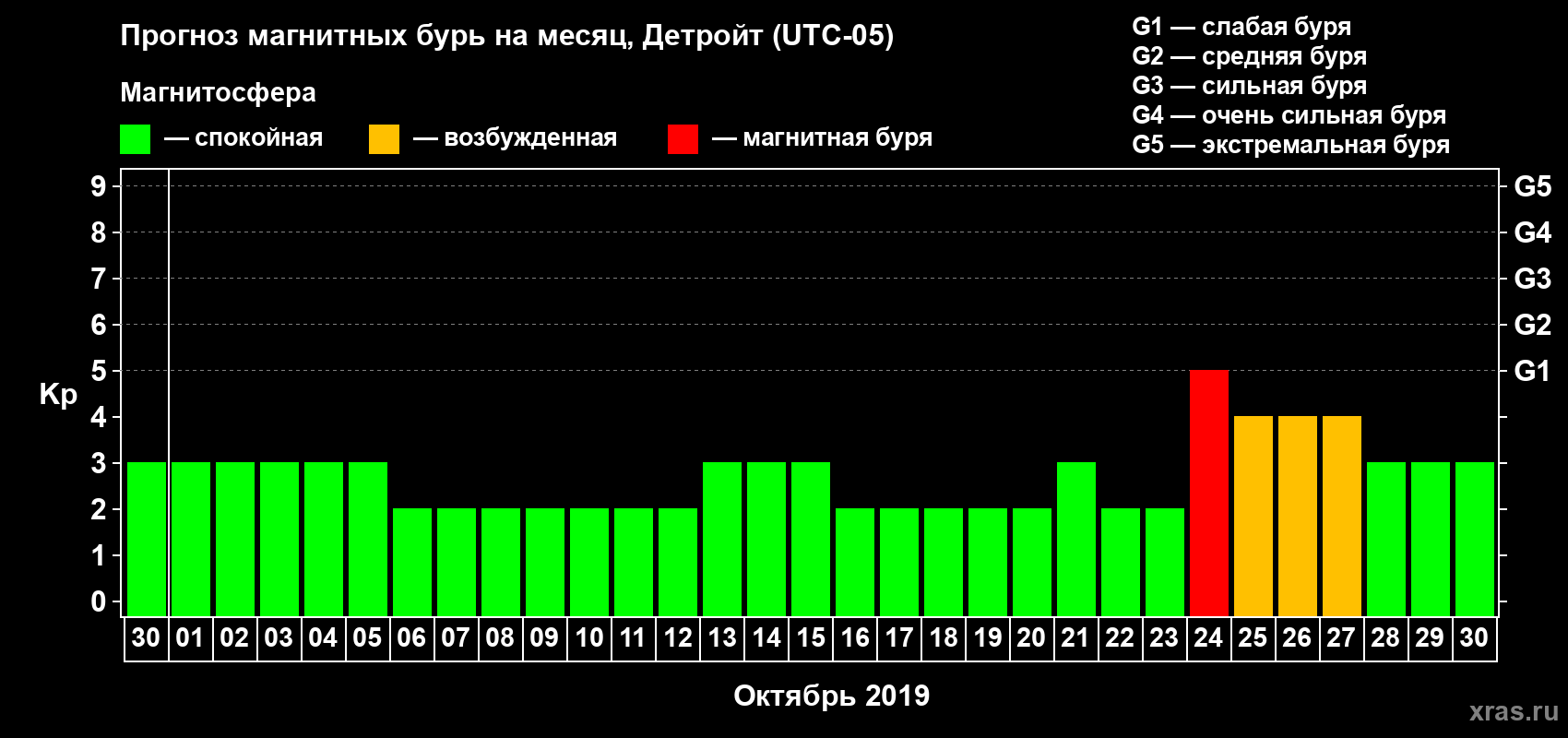 Прогноз магнитных бурь в Детройте — 30 сентября 2019 года