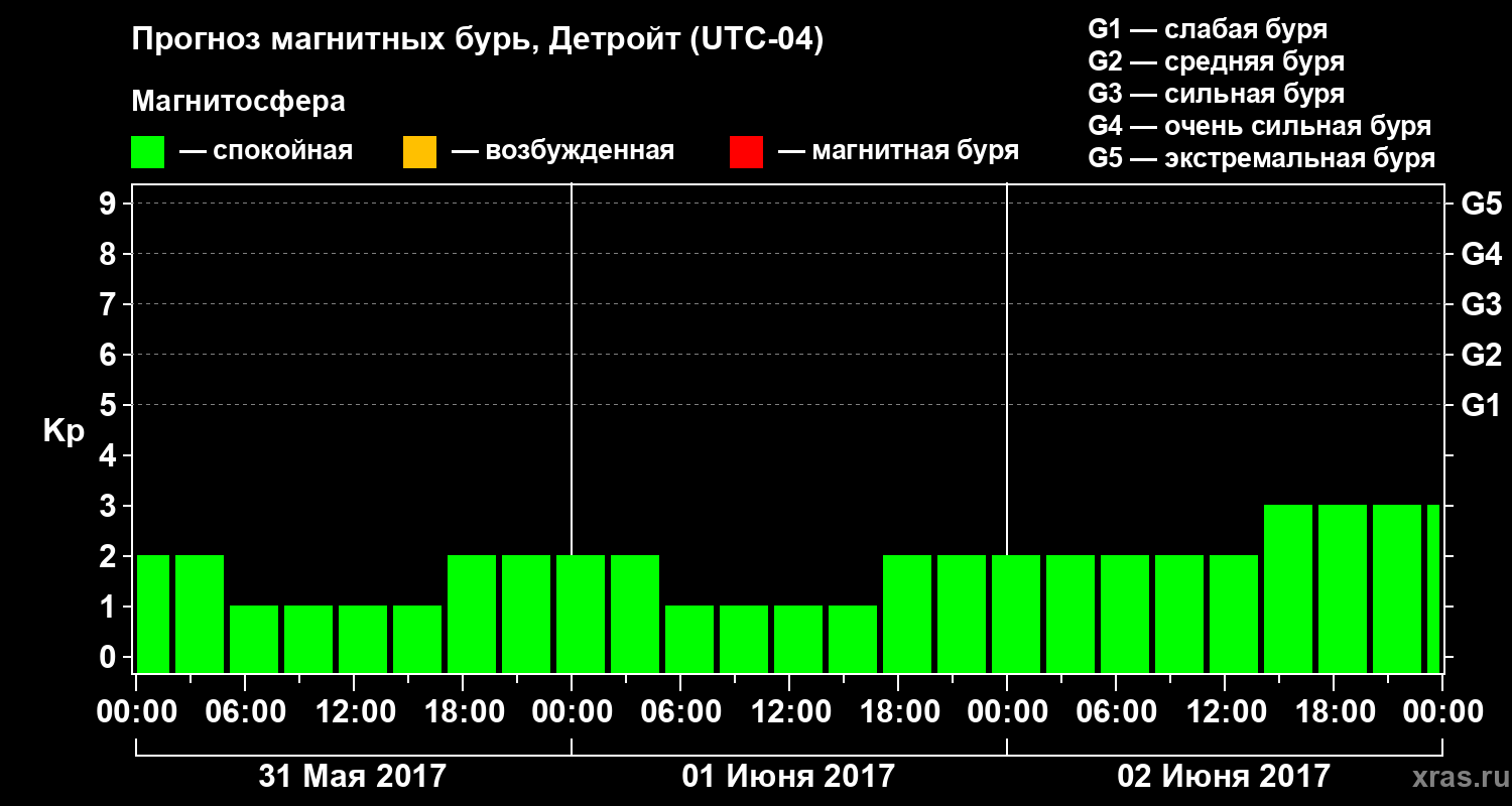 Прогноз магнитных бурь в Детройте — 31 мая 2017 года