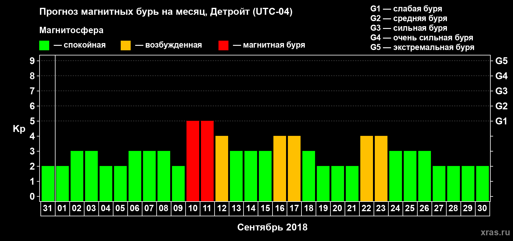 Прогноз магнитных бурь в Детройте на 31 августа 2018 года