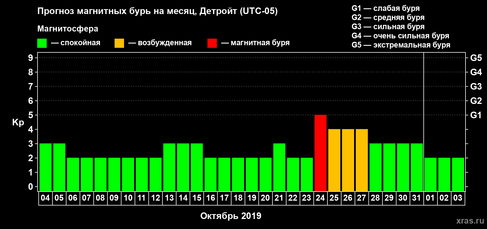 Прогноз магнитных бурь в Детройте — 4 октября 2019 года
