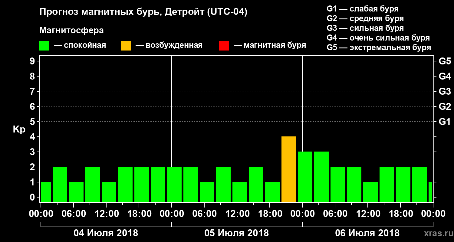 Прогноз магнитных бурь в Детройте — 4 июля 2018 года