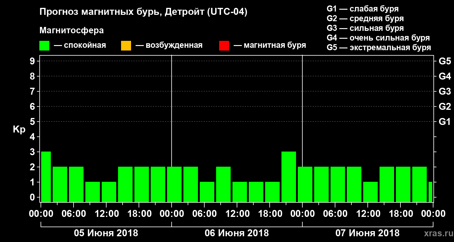 Прогноз магнитных бурь в Детройте на 5 июня 2018 года