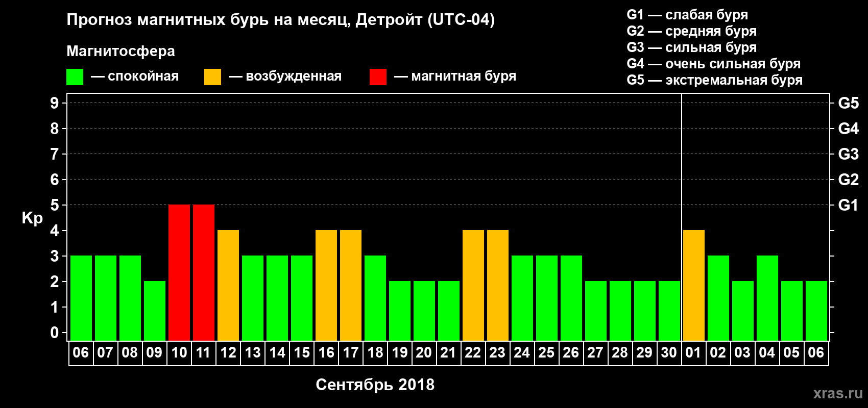 Прогноз магнитных бурь в Детройте — 6 сентября 2018 года