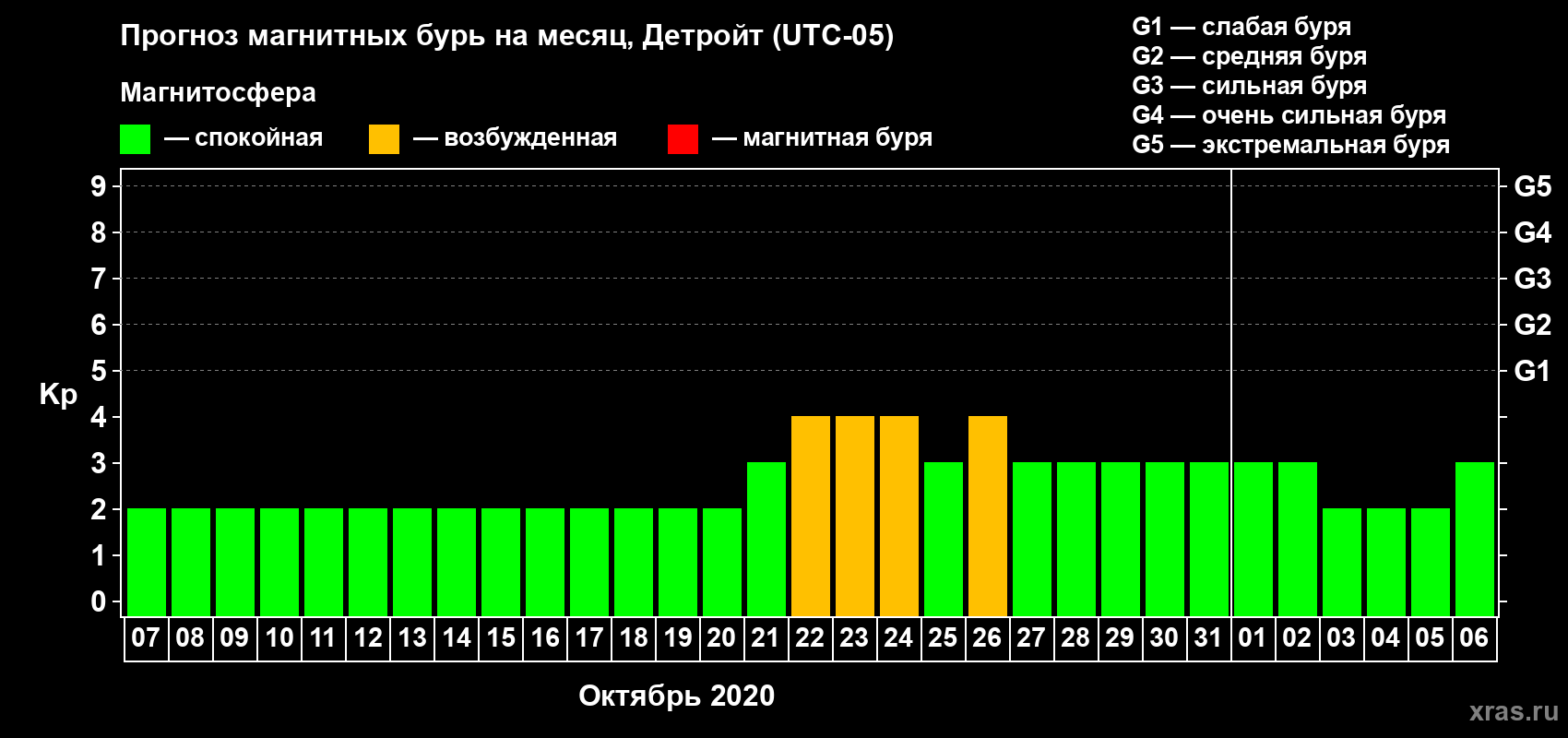 Прогноз магнитных бурь в Детройте — 7 октября 2020 года