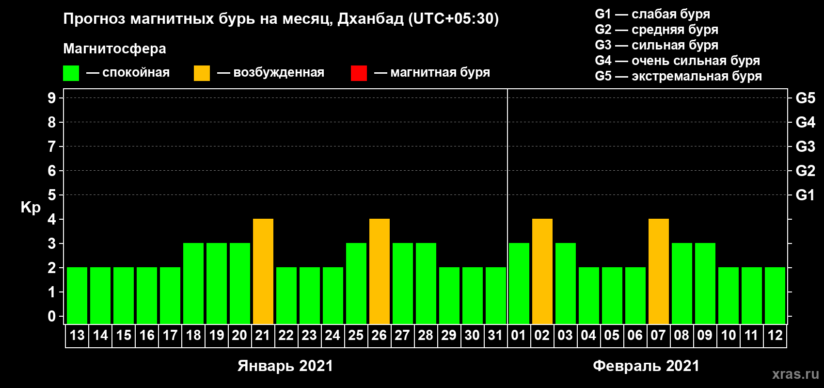 Прогноз магнитных бурь в Дханбаде — 13 января 2021 года