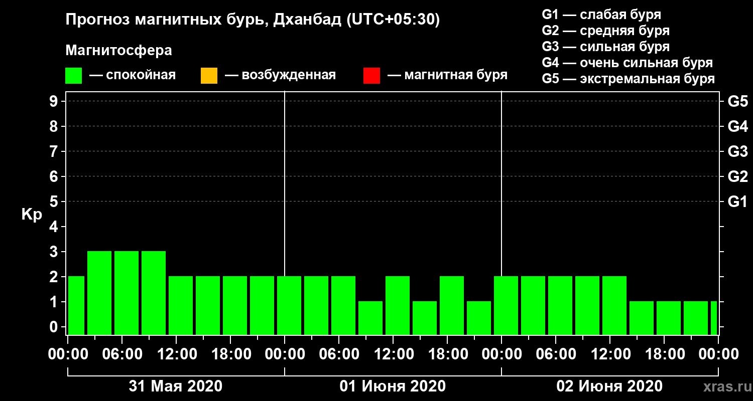 Прогноз магнитных бурь в Дханбаде — 31 мая 2020 года