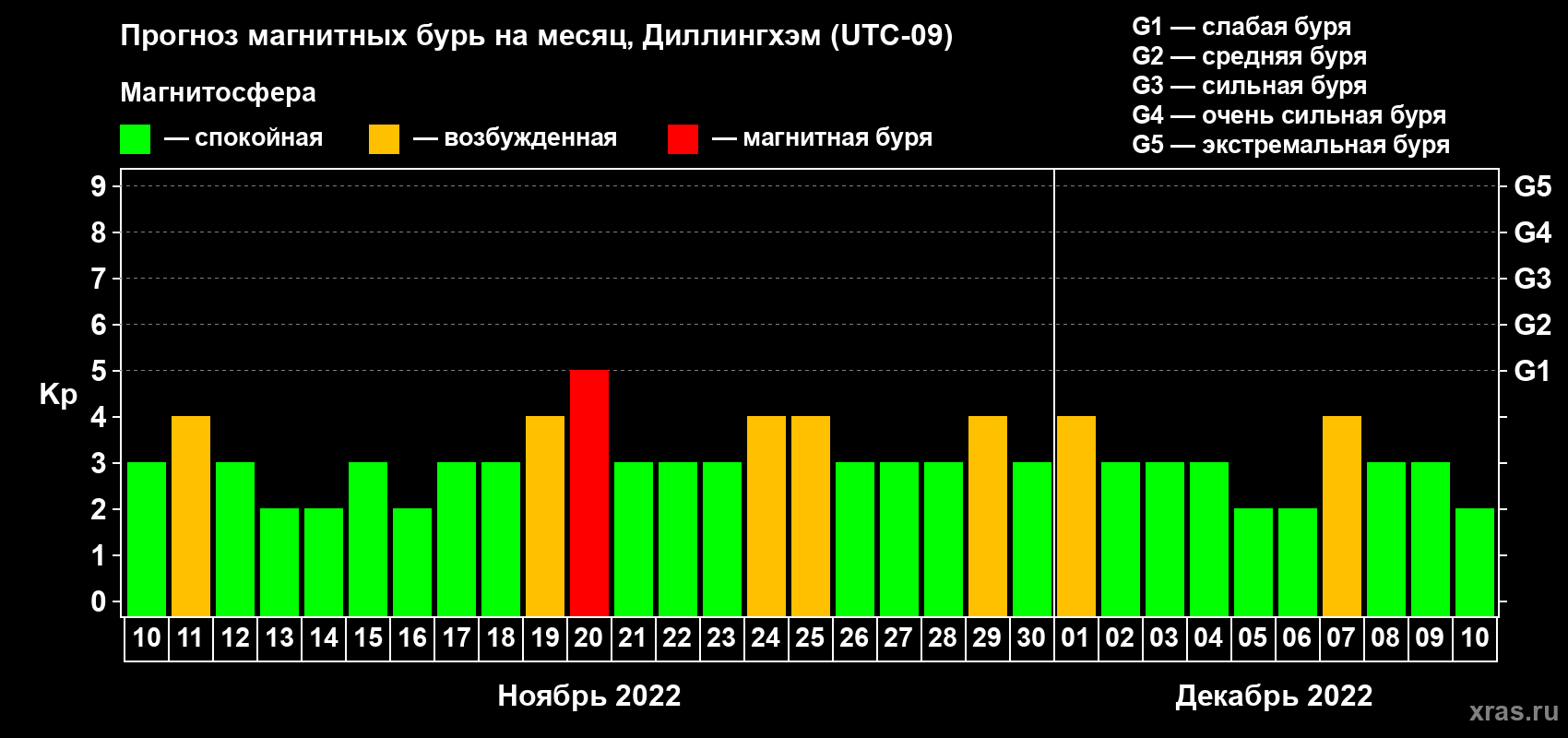 Прогноз магнитных бурь в Диллингхэме — 10 ноября 2022 года