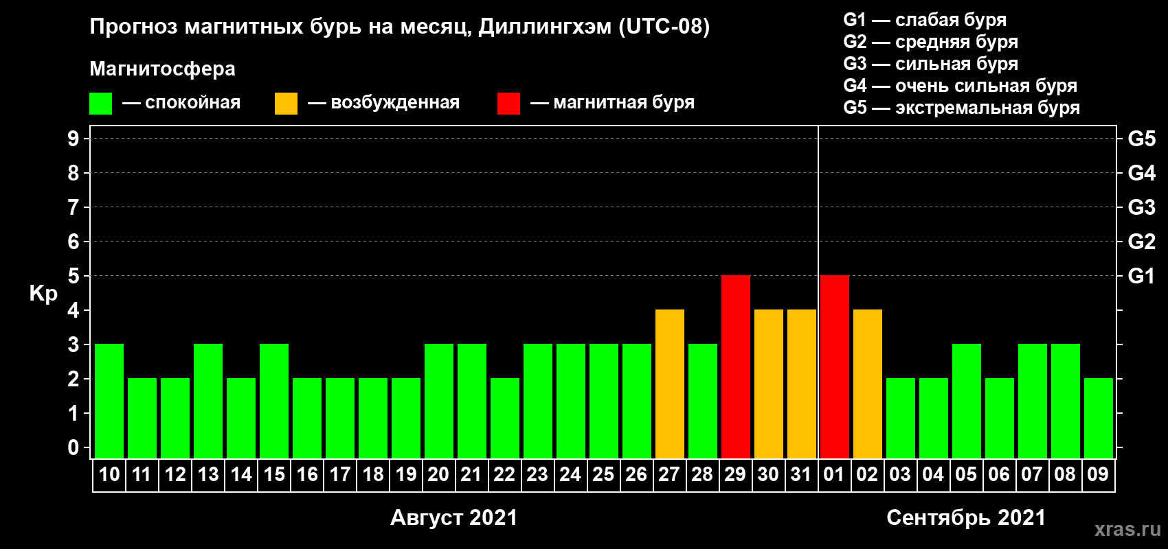 Прогноз магнитных бурь на месяц