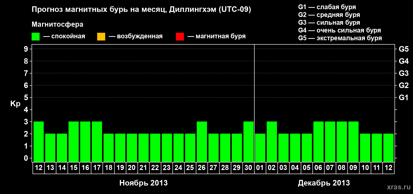 Прогноз магнитных бурь в Диллингхэме — 12 ноября 2013 года