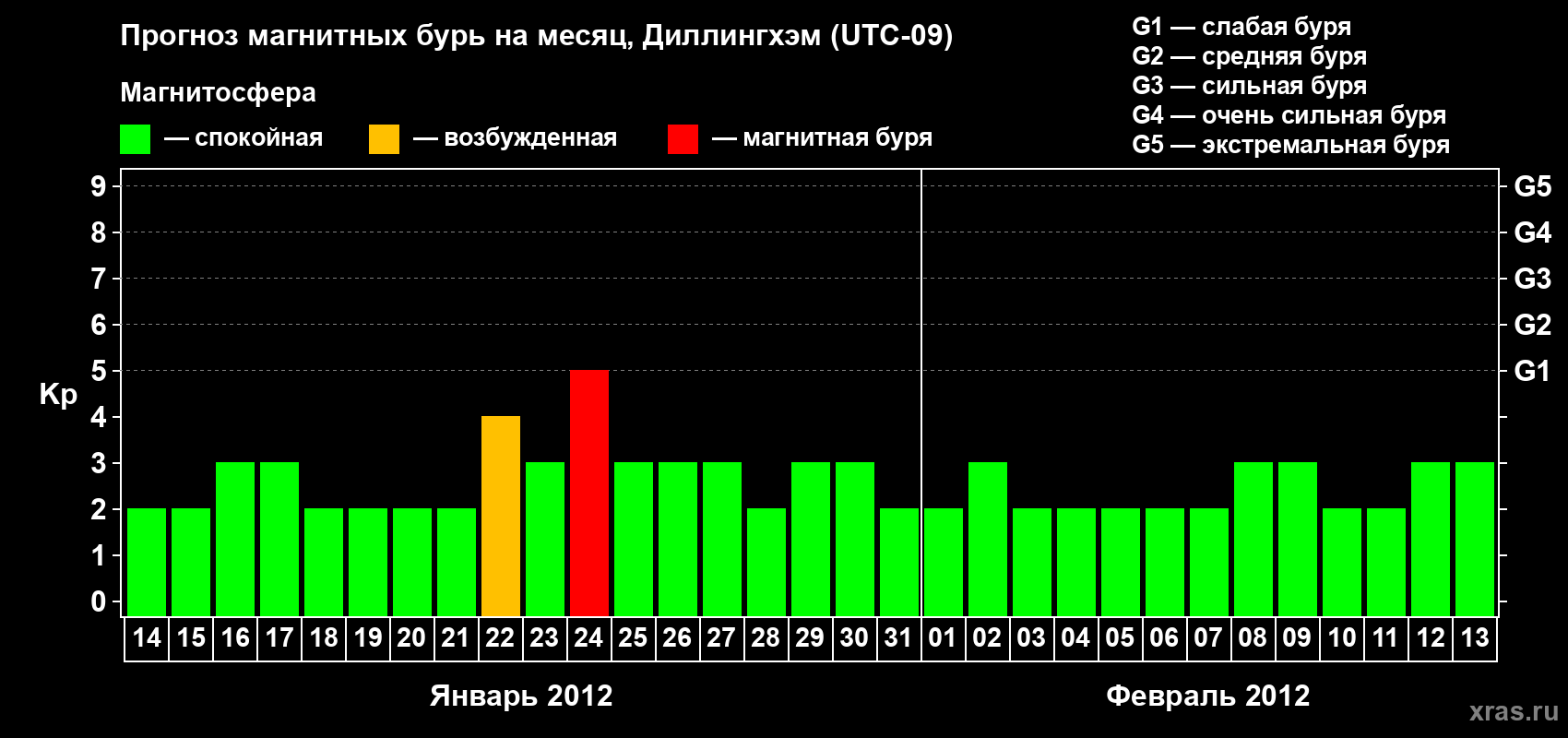 Прогноз магнитных бурь в Диллингхэме — 14 января 2012 года
