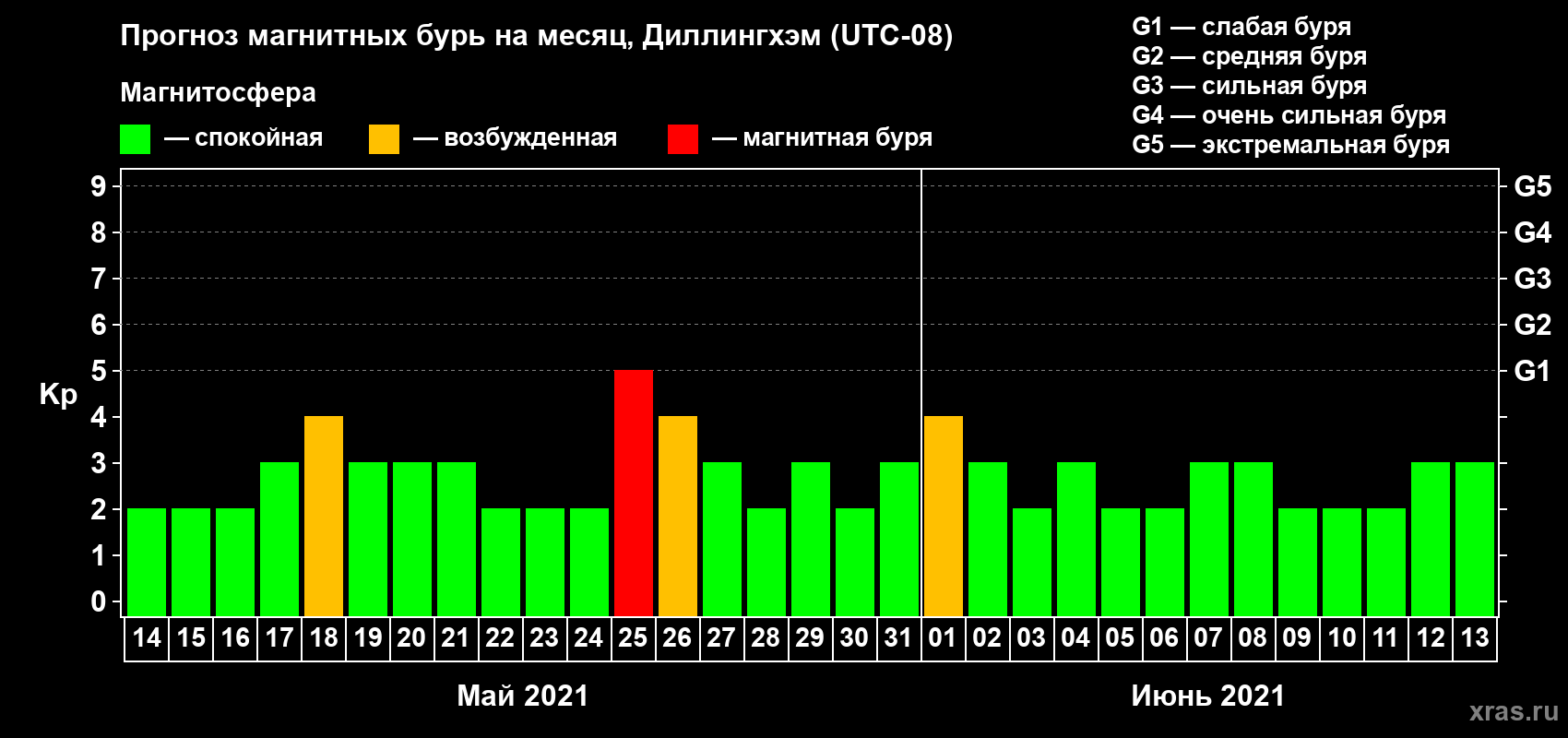 Прогноз магнитных бурь в Диллингхэме — 14 мая 2021 года