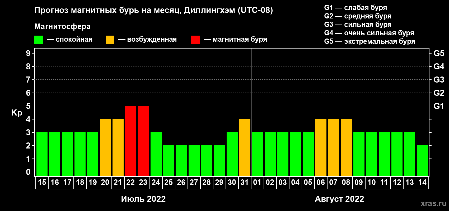 Прогноз магнитных бурь в Диллингхэме — 15 июля 2022 года