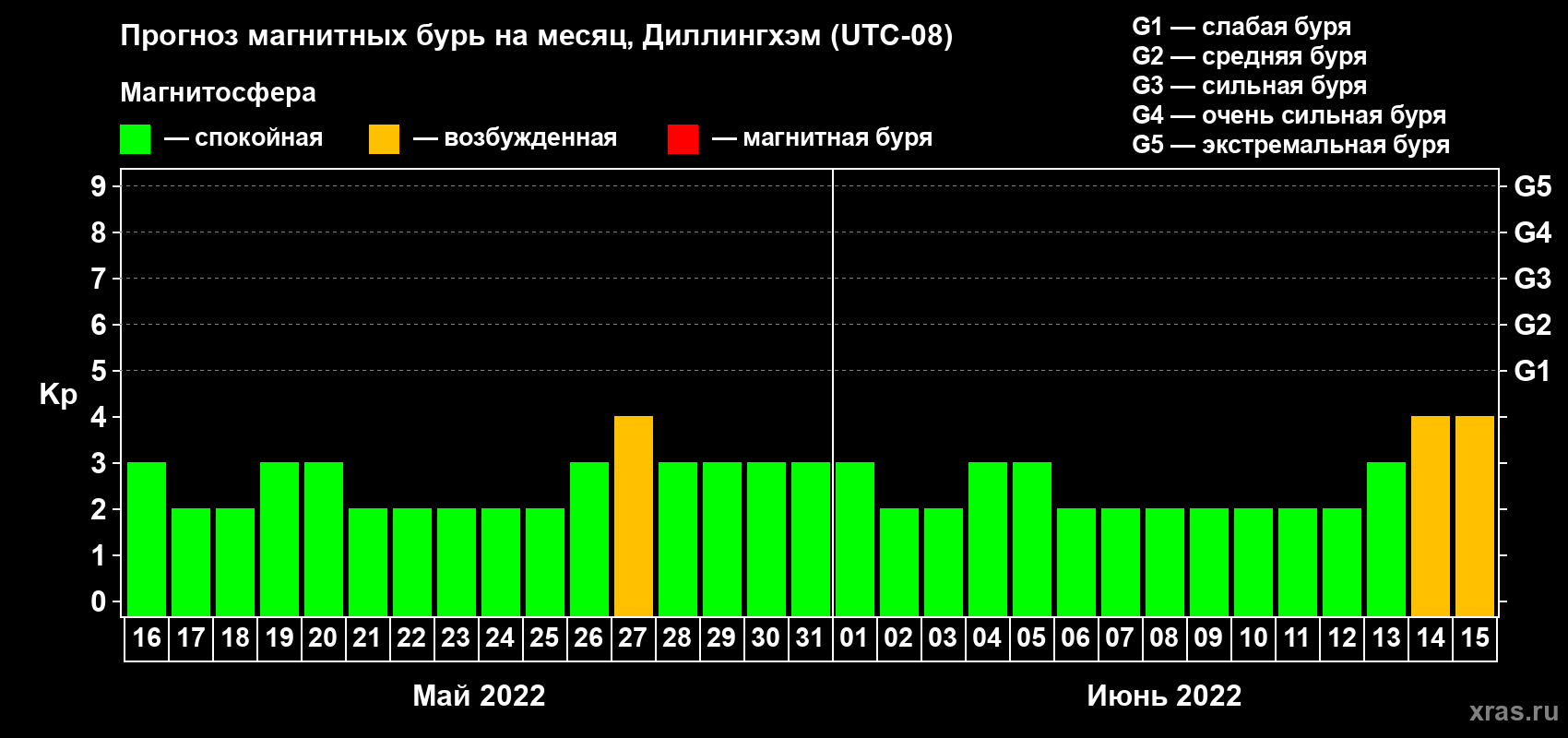 Прогноз магнитных бурь в Диллингхэме на 16 мая 2022 года