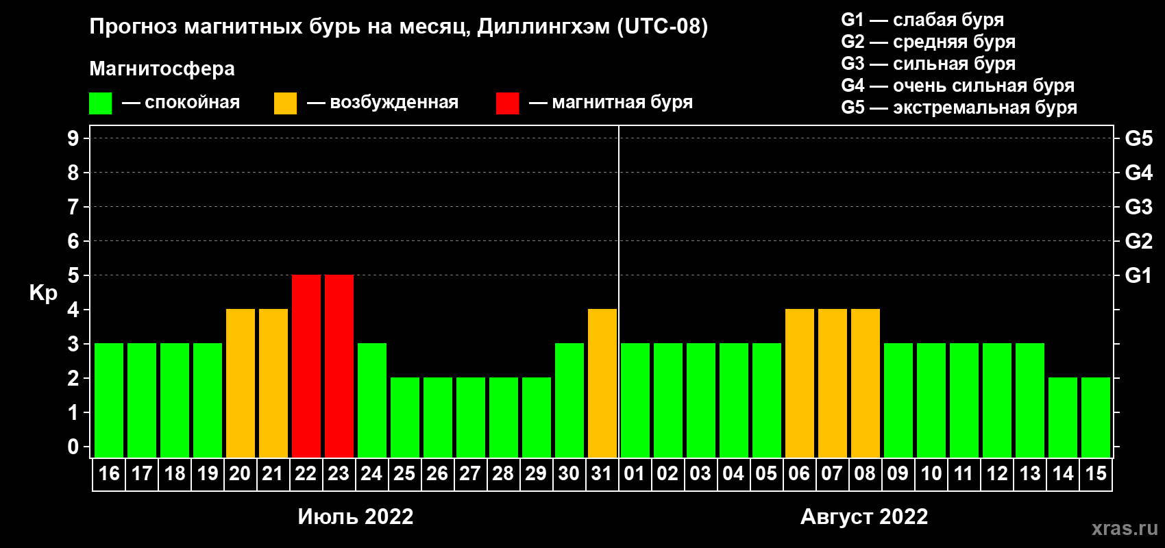 Прогноз магнитных бурь в Диллингхэме — 16 июля 2022 года