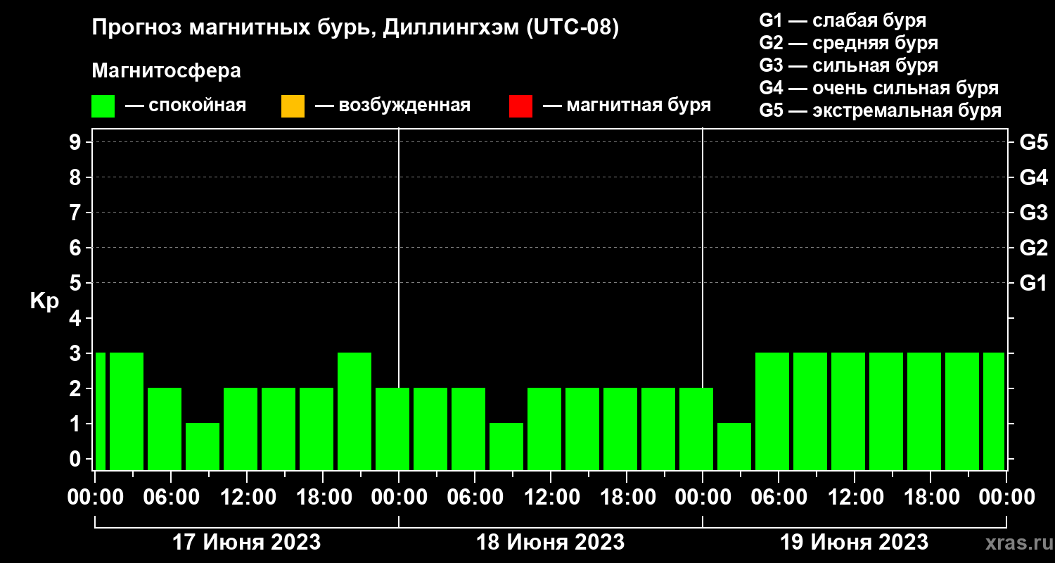 Прогноз магнитных бурь в Диллингхэме — 17 июня 2023 года