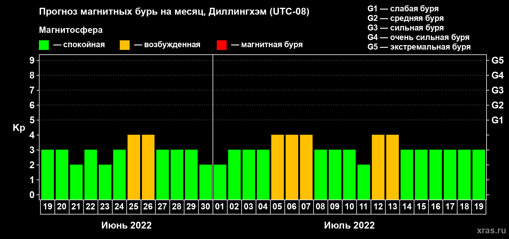 Прогноз магнитных бурь в Диллингхэме — 19 июня 2022 года