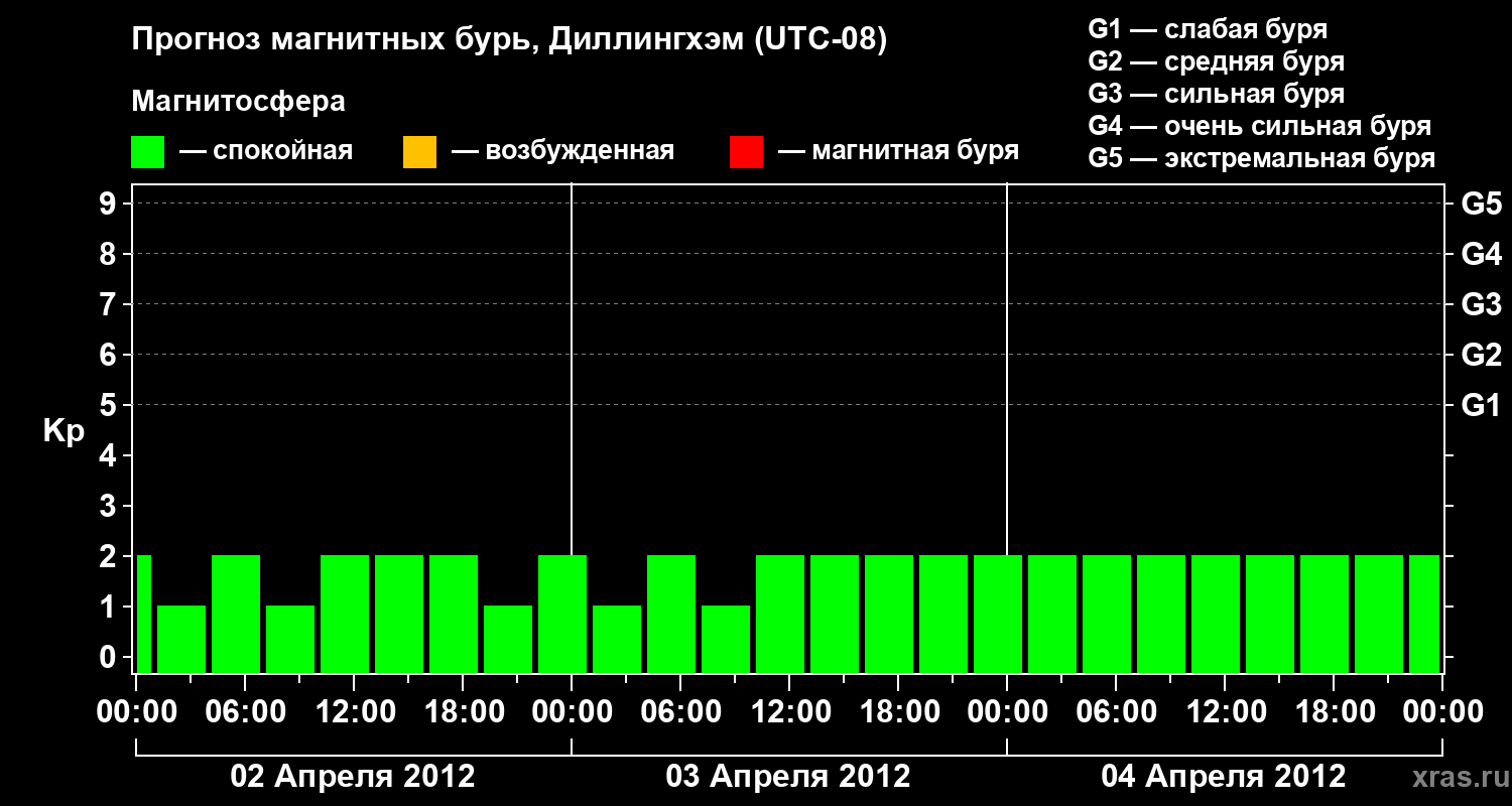 Прогноз магнитных бурь в Диллингхэме — 2 апреля 2012 года