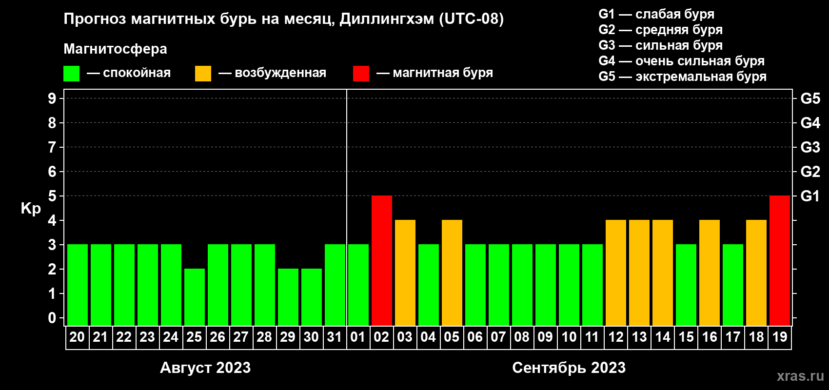 Прогноз магнитных бурь в Диллингхэме — 20 августа 2023 года