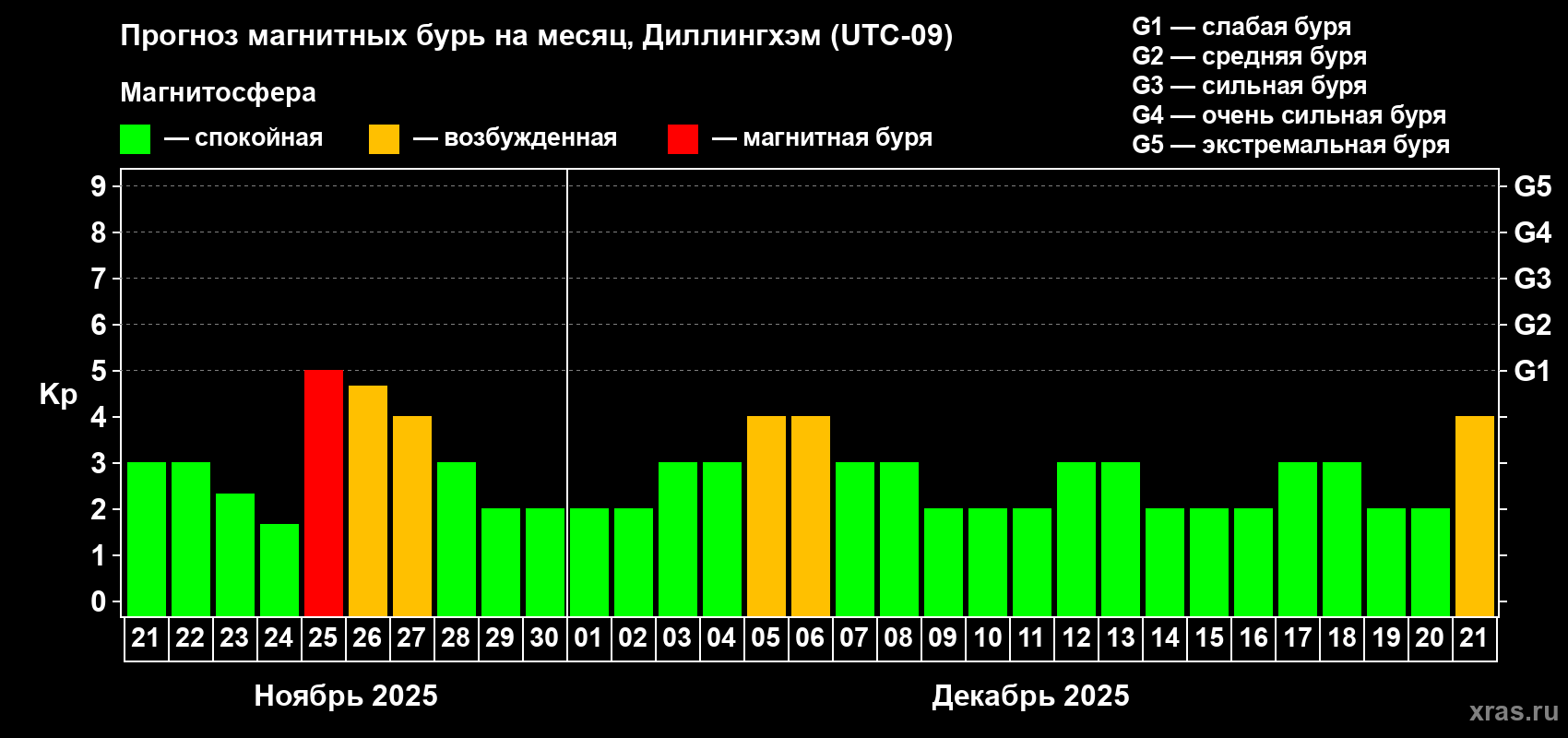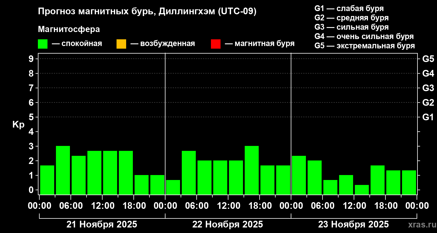 Прогноз магнитных бурь в Диллингхэме — 21 ноября 2025 года