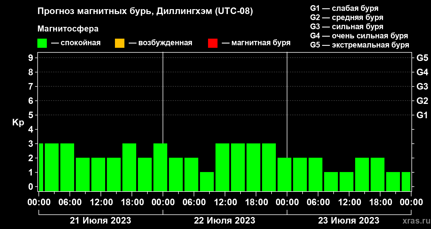 Прогноз магнитных бурь в Диллингхэме на 21 июля 2023 года