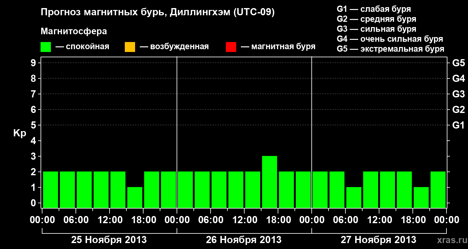 Прогноз магнитных бурь в Диллингхэме — 25 ноября 2013 года