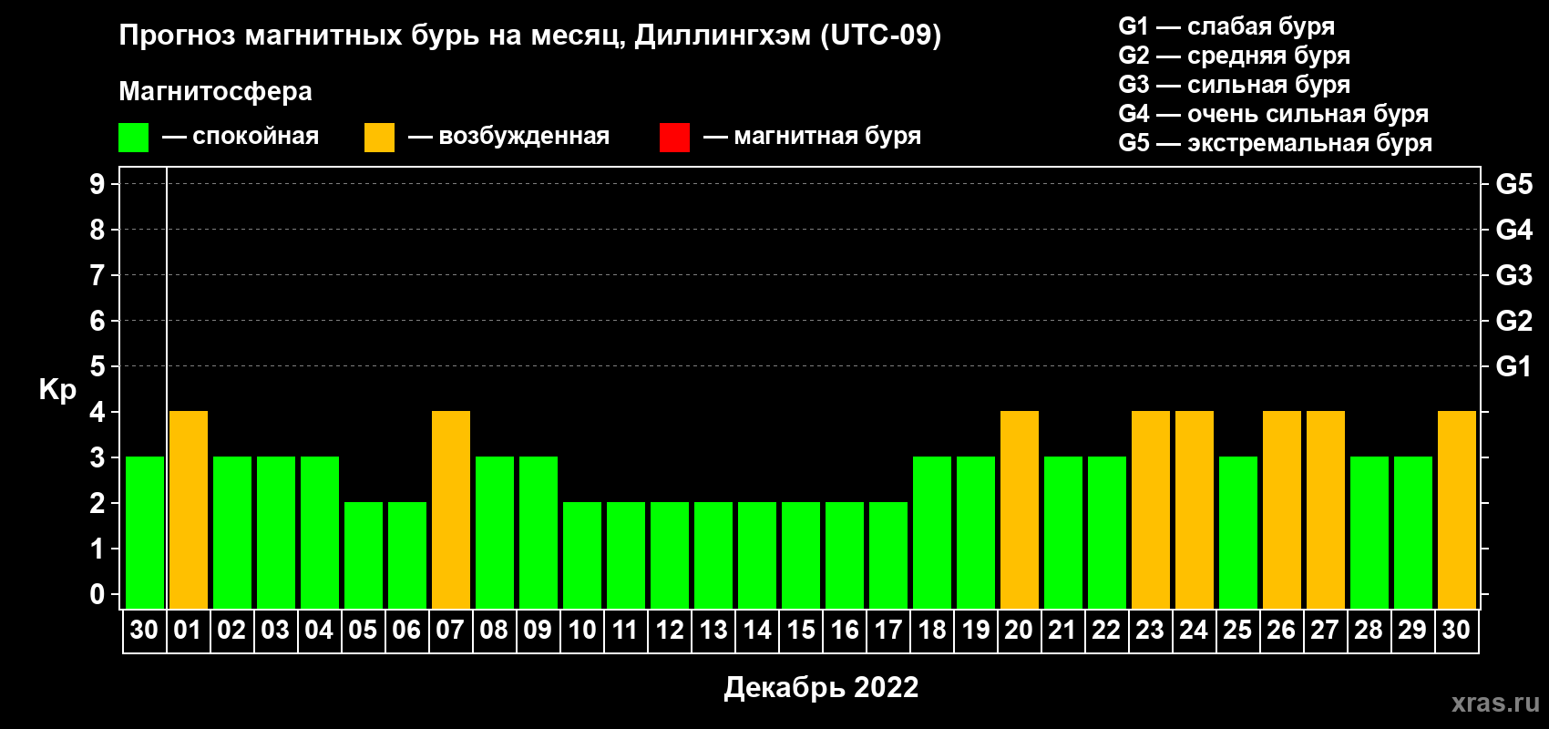 Прогноз магнитных бурь в Диллингхэме — 30 ноября 2022 года
