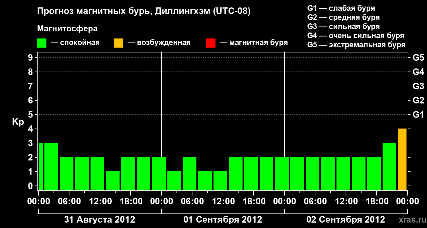 Прогноз магнитных бурь в Диллингхэме — 31 августа 2012 года