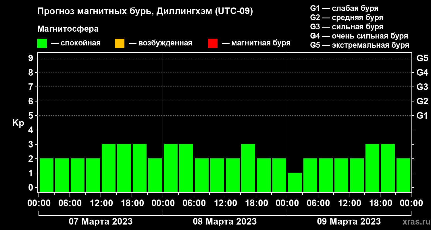 Прогноз магнитных бурь в Диллингхэме на 7 марта 2023 года