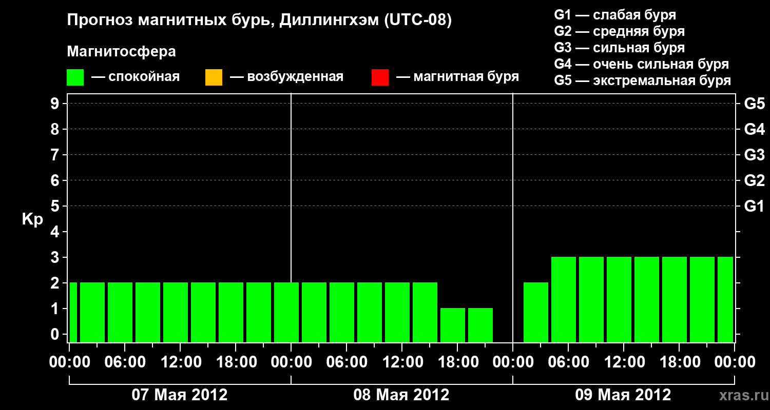Прогноз магнитных бурь в Диллингхэме — 7 мая 2012 года