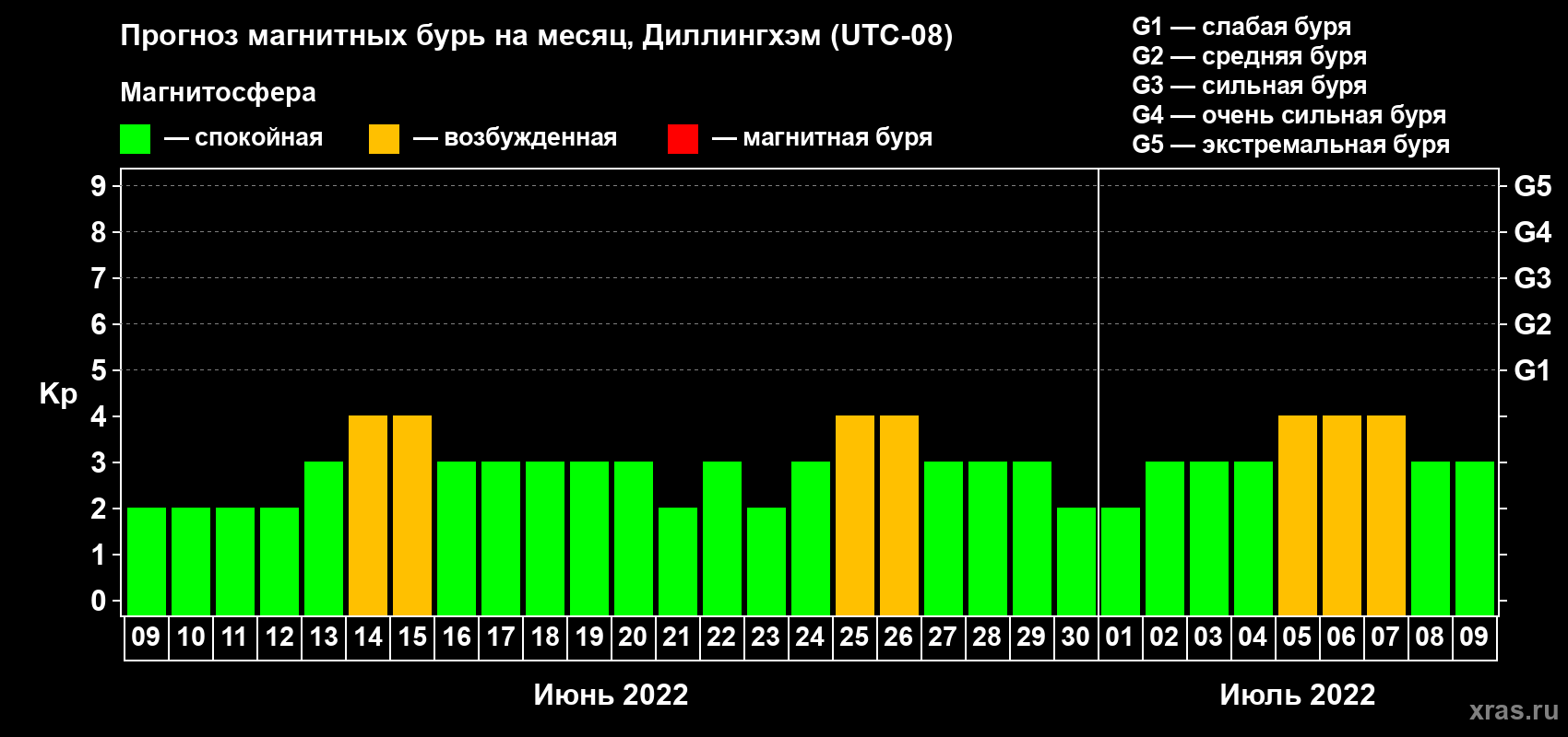 Прогноз магнитных бурь в Диллингхэме — 9 июня 2022 года