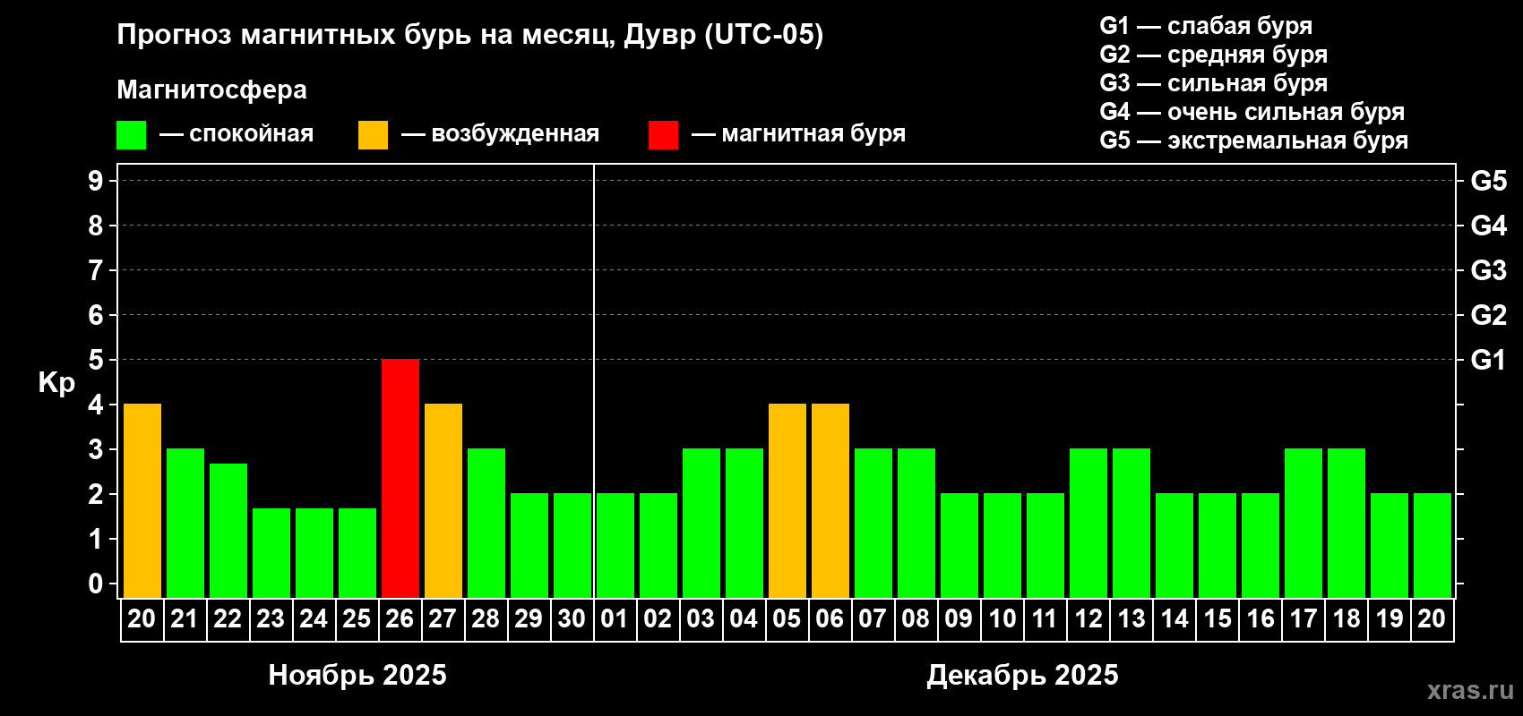 Прогноз магнитных бурь в Дувре — 20 ноября 2025 года