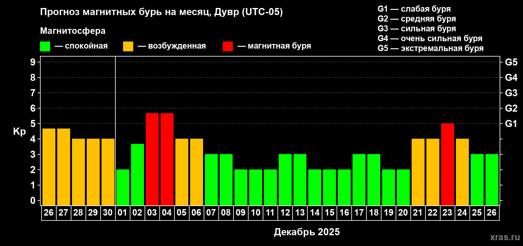 Прогноз магнитных бурь в Дувре — 26 ноября 2025 года