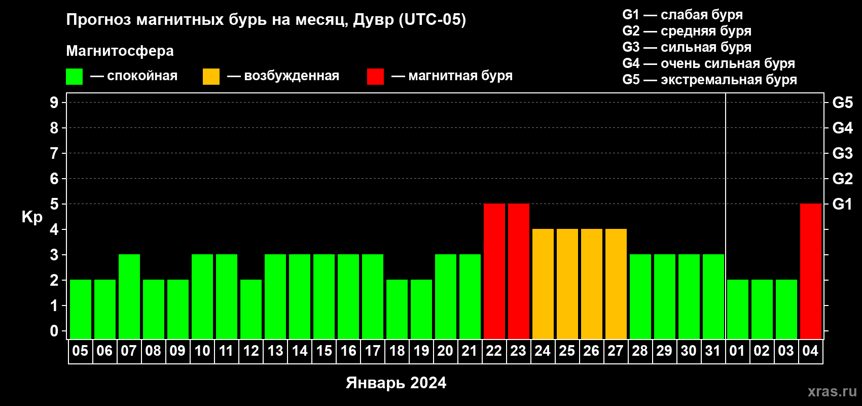 Прогноз магнитных бурь в Дувре на 5 января 2024 года