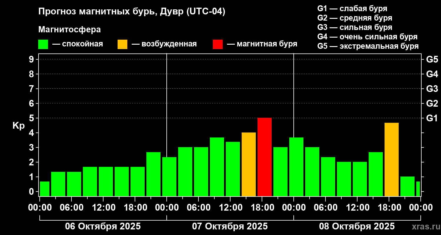 Прогноз магнитных бурь в Дувре на 6 октября 2025 года