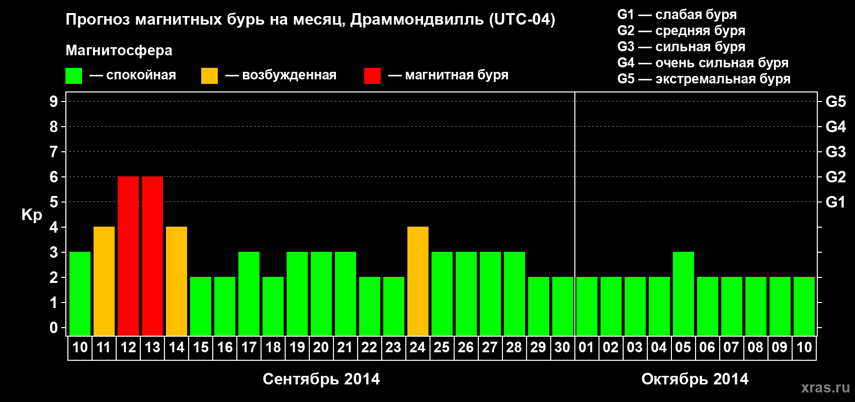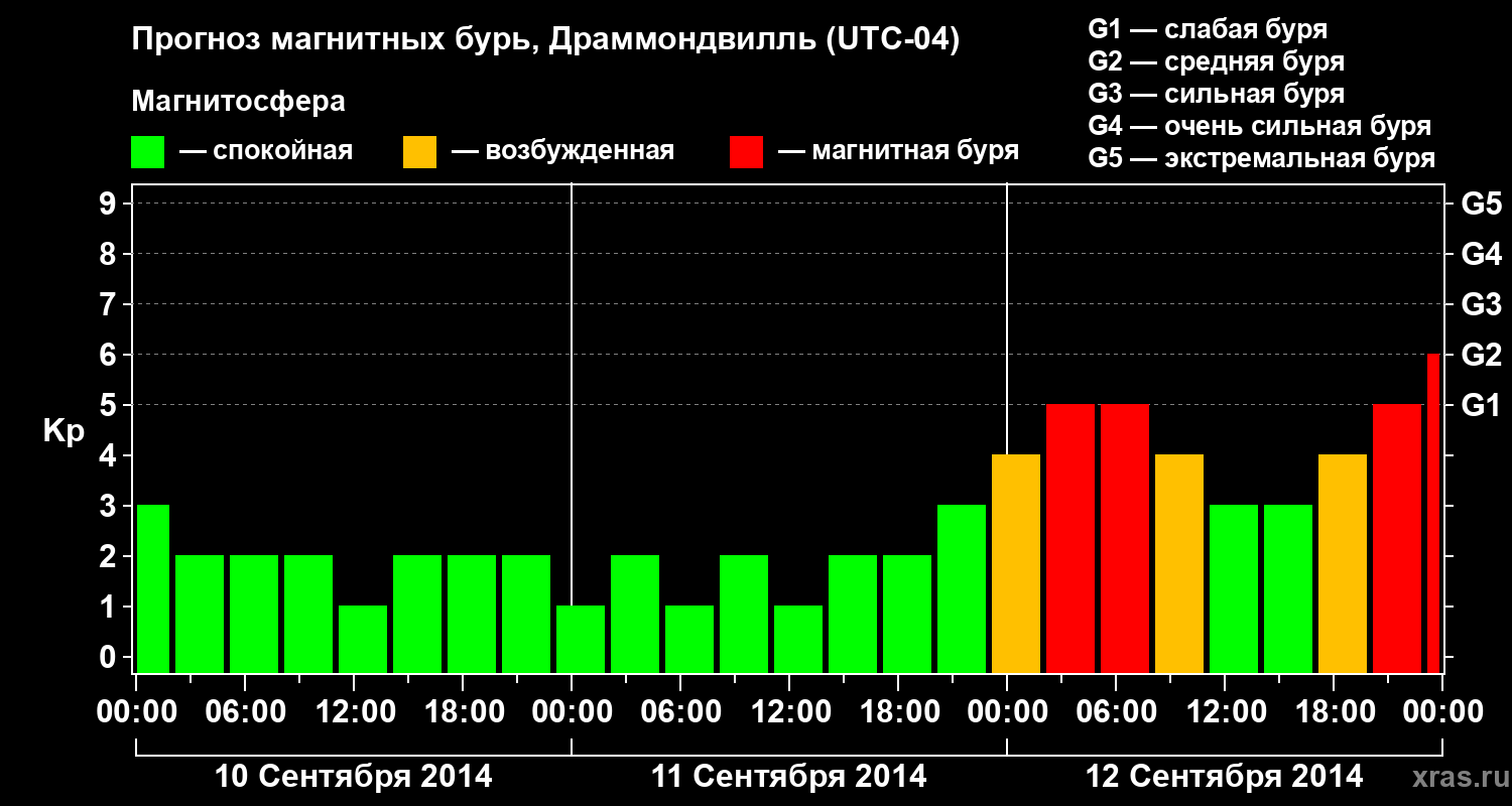 Прогноз магнитных бурь в Драммондвилле — 10 сентября 2014 года