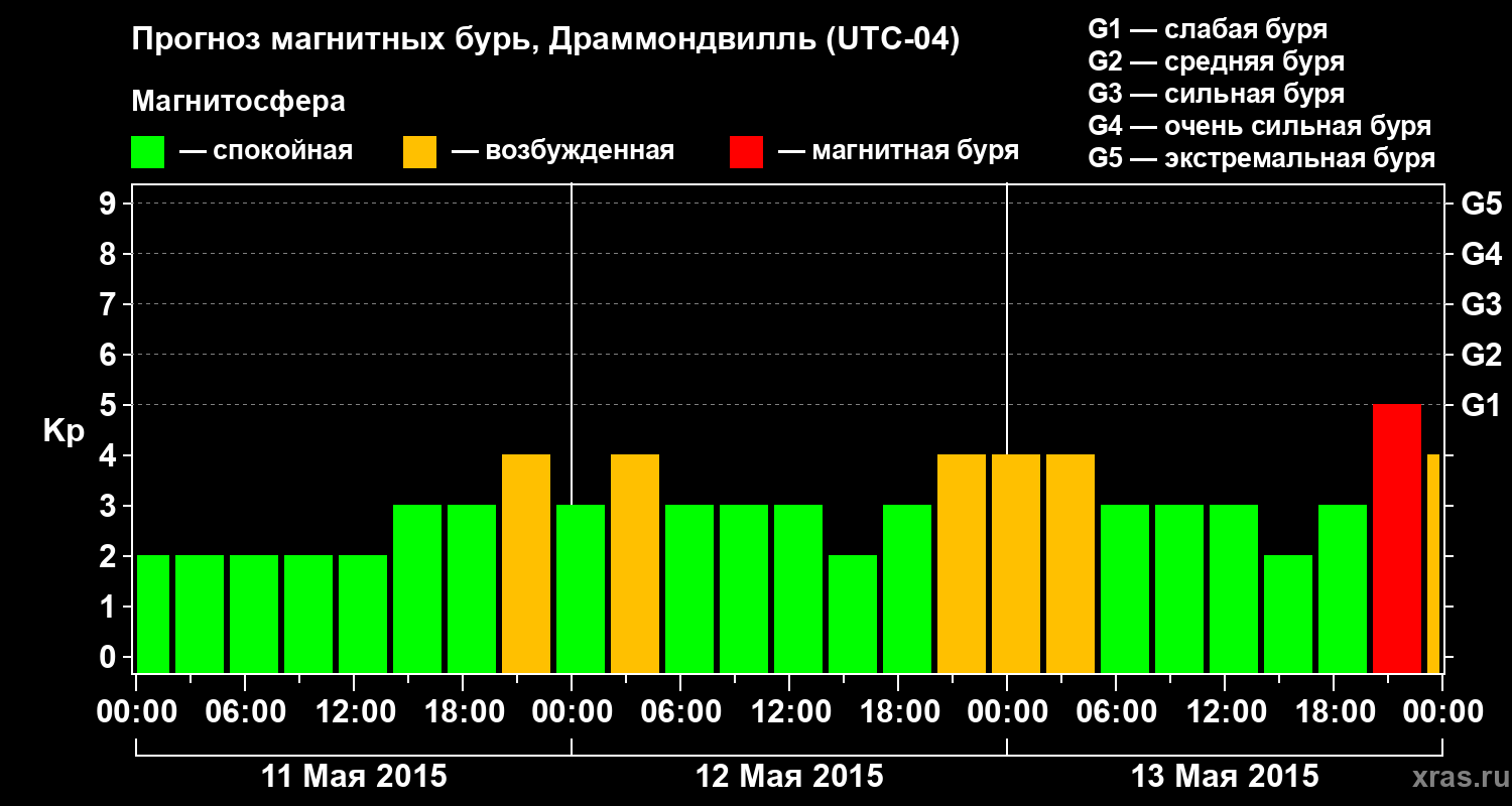Прогноз магнитных бурь в Драммондвилле — 11 мая 2015 года