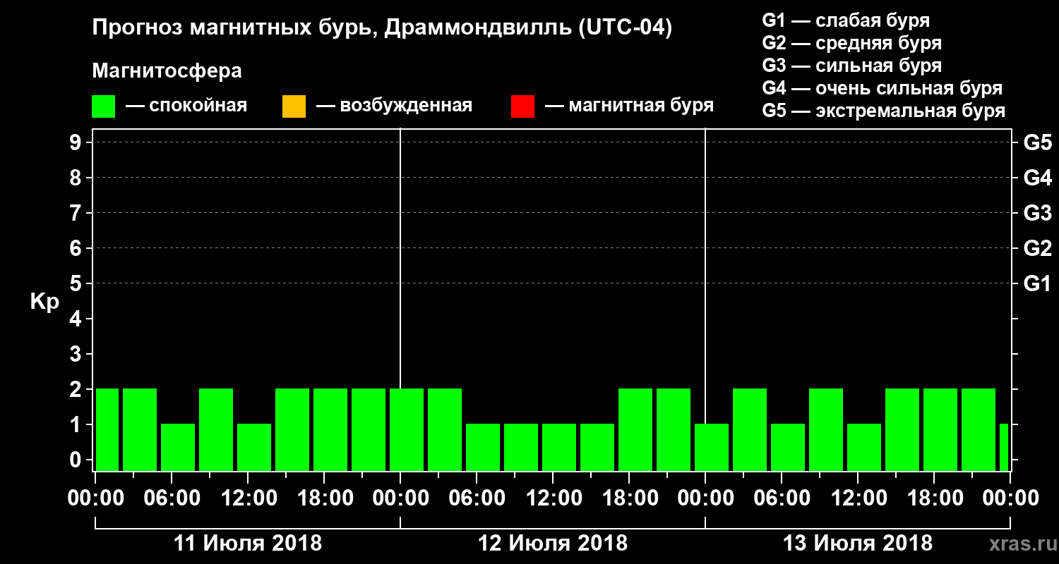 Прогноз магнитных бурь в Драммондвилле — 11 июля 2018 года